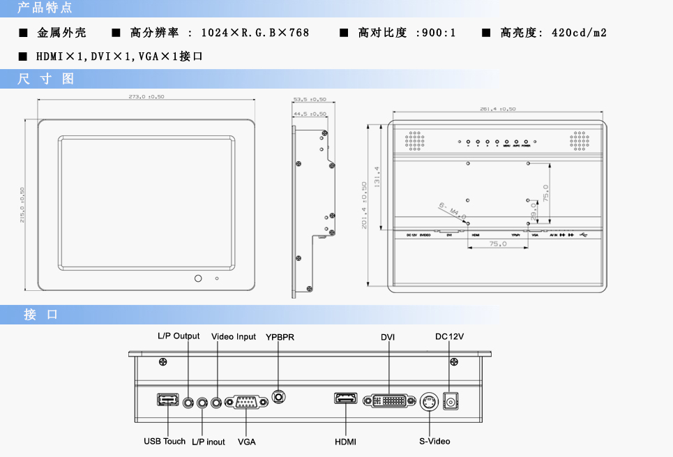 | 輸入信號(hào) | RCA Video×2,RCA Audio×1,VGA×1,DVI×1,HDMI×1,YPBPR×1,S-video×1 | ||
