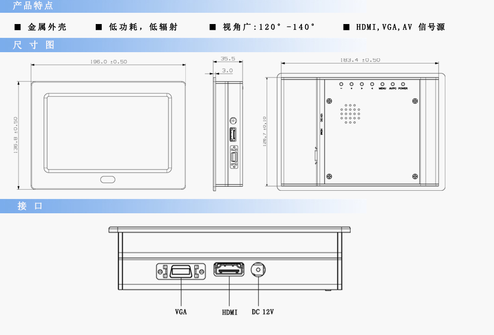 | 輸入信號(hào) | RCA Video×2,RCA Audio×1,VGA×1,DVI×1,HDMI×1 | ||