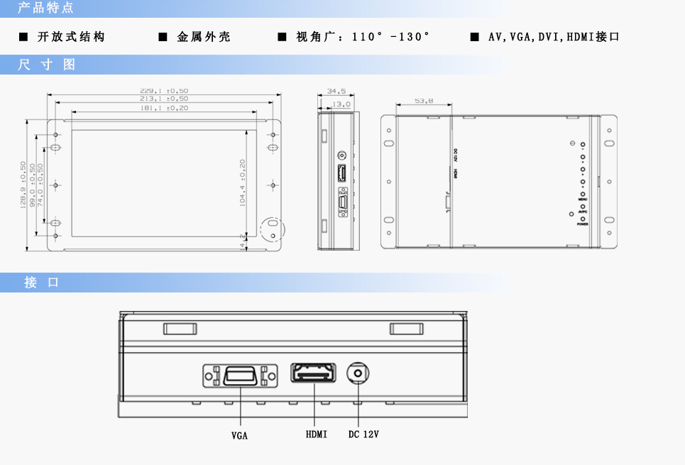 | 輸入信號(hào) | RCA Video×2,RCA Audio×1,VGA×1,DVI×1,HDMI×1 | ||