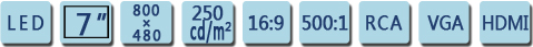 輸入信號:RCA Video×2,RCA Audio×1,VGA×1,DVI×1,HDMI×1